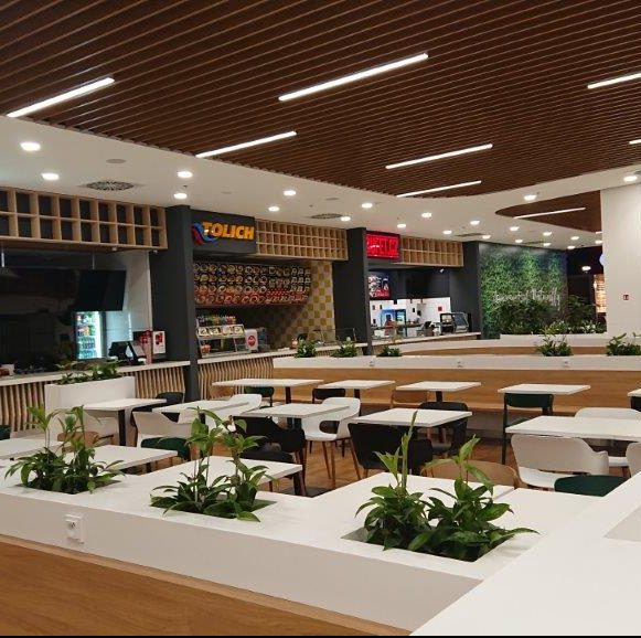 Rozsah food courtů: 4 food courtové jednotky na ploše 310 m2 – cirka 35 míst k sezení
